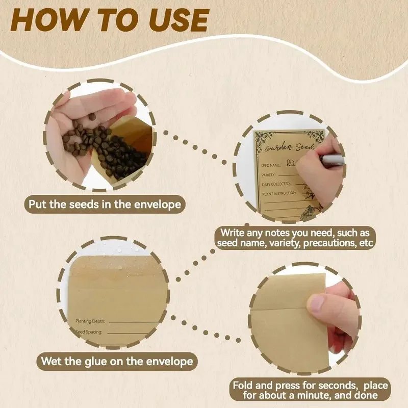 Our 50/100pcs Seed Envelopes Collection is backed by our satisfaction guarantee. We’re confident that you’ll love these envelopes and the value they bring to your gardening experience. Order now and start organizing your seeds with ease!